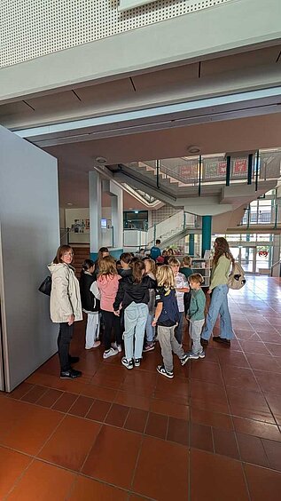 Die Schülerinnen und Schüler der 3. und 4. Klassen besuchten die interaktive Wasserausstellung der Regierung von Unterfranken, die für einige Zeit in der Realschule Dettelbach präsentiert wird. Lehrerin Frau Petra Fackelmann hatte eingeladen und freute sich über das große Interesse der Grundschule. Tutoren der Realschule begleiteten die Kinder in Gruppen bei den verschiedenen Stationen. In einem Lernquiz rund um das Thema Wasser konnten die Schülerinnen und Schüler ihr Wissen überprüfen.