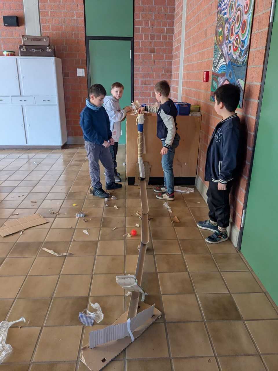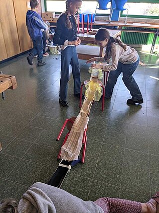 Im Mittelpunkt stand zunächst der Bau einer Murmelbahn. Dabei untersuchten die Kinder spielerisch, wie sich rollende Bewegungen verhalten, welche Rolle Schwerkraft, Neigung und Reibung spielen und wie sich durch geschickte Konstruktionen der Lauf der Murmel beeinflussen lässt. Eigene Vermutungen wurden aufgestellt, überprüft und immer wieder neu angepasst – ganz wie echte Forscherinnen und Forscher.
